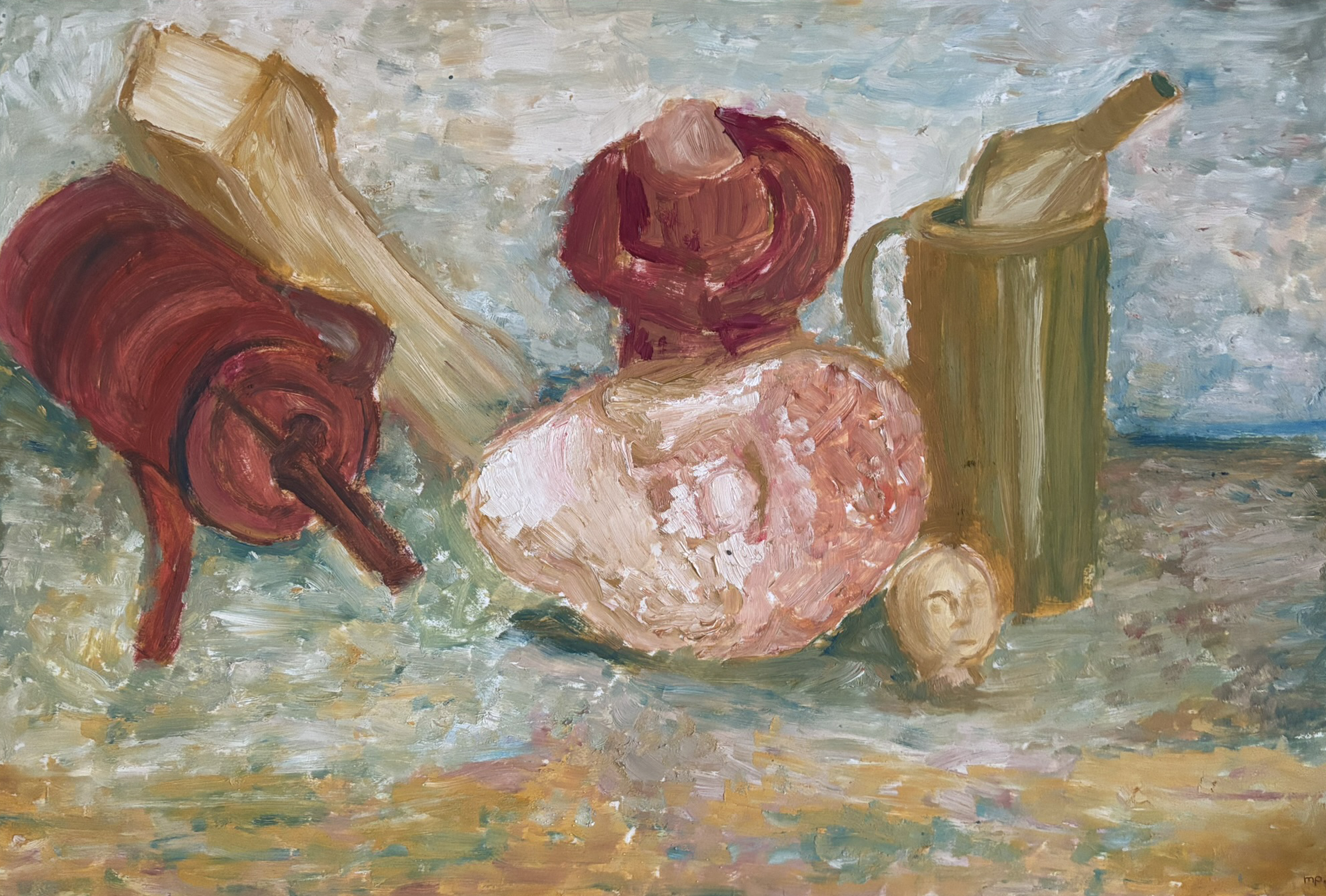 Stillleben mit Gipsköpfen, Ölkanne